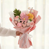 Description: A delightful mix of soft pinks, roses, and creams. This bouquet is like a sweet, happy blush, perfect for expressing gentle affection and heartfelt joy.