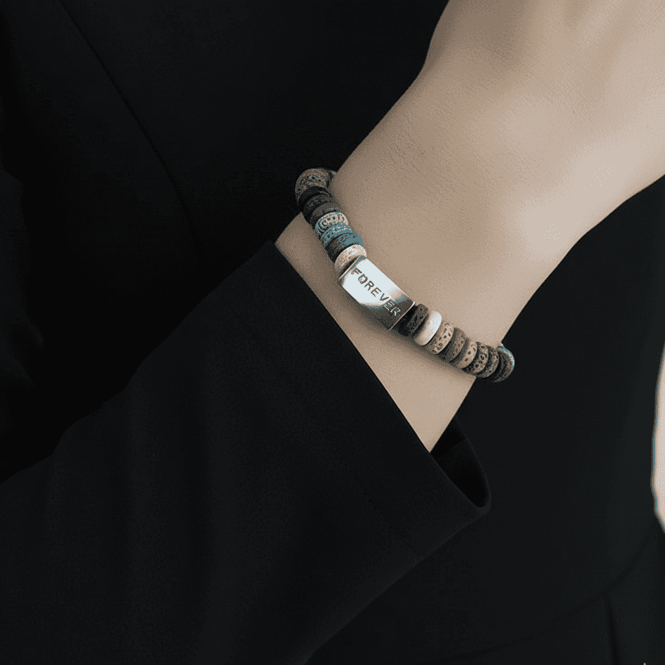 ✒️ Engravable Volcanic Stone Bracelet: A unique and stylish bracelet featuring natural volcanic stone beads, ready for your custom message.
