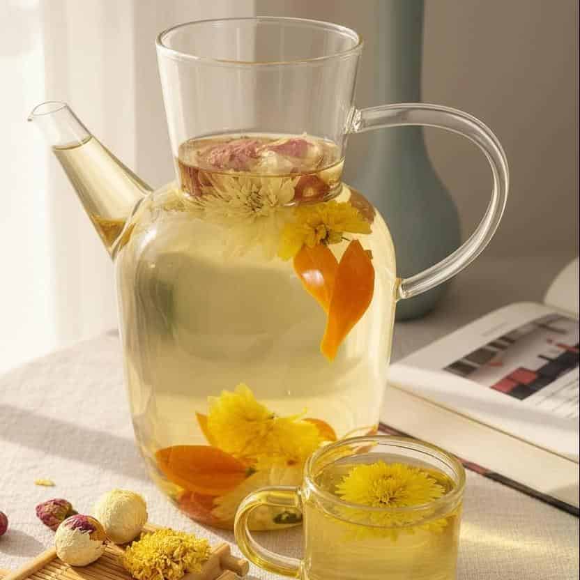 🌸 4 Tubes of Floral Tea: A fragrant selection including delicate Jasmine, beautiful Rose, calming Chrysanthemum, and a magical Blooming Tea Ball.