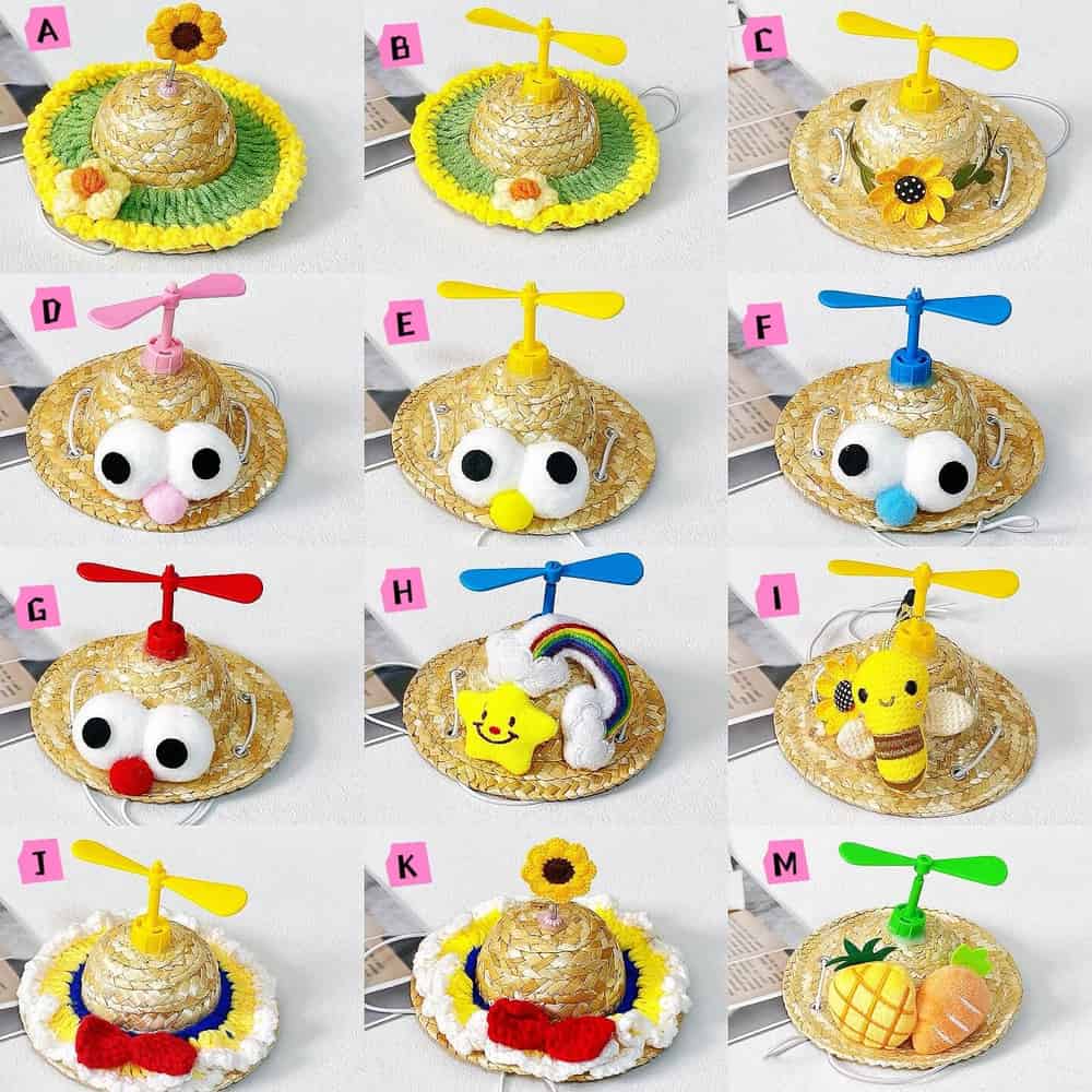 πŸ‘’ 1 x Adorable Pet Hat (Choose Your Style!): Get your camera ready! πŸ“Έ We have a wide variety of charming and hilarious mini straw hats for you to choose from. Whether you love the ones with funny googly eyes, cute propellers, or sweet crocheted decorations, there's a perfect style for every pup's personality.
